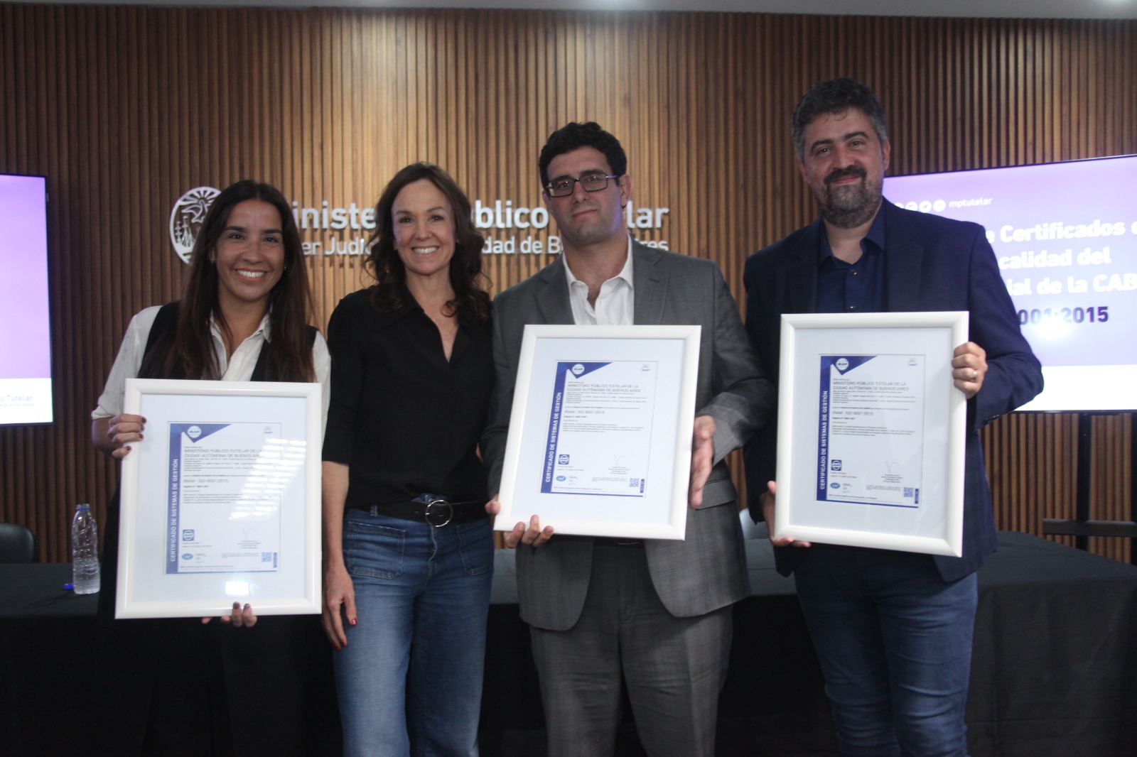 El evento contó con palabras de Adrián Pérez, Director General de Planificación y Gestión de Calidad de la Comisión de Administración Conjunta; Nicolás Elicabe, Director Ejecutivo de IRAM; Genoveva Ferrero, Presidenta de la Comisión de Administración Conjunta; y Carolina Stanley, Asesora General Tutelar.